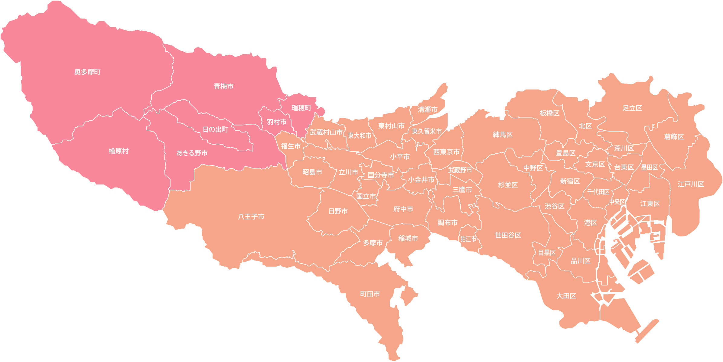 世田谷区/港区/目黒区/杉並区/渋谷区/新宿区/文京区/中央区/千代田区/品川区/豊島区/中野区/練馬区/板橋区/台東区/墨田区/江東区/大田区/北区/荒川区/足立区/葛飾区/江戸川区/八王子市/立川市/武蔵野市/三鷹市/府中市/昭島市/調布市/町田市/小金井市/小平市/日野市/東村山市/国分寺市/国立市/福生市/狛江市/東大和市/清瀬市/東久留米市/武蔵村山市/多摩市/稲城市/西東京市